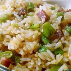 1.Soak the beans in salt water for 10 minutes to remove residual pesticides.2.Slice the fatty bacon and fry it in oil to make the rice more fragrant.3.When cooking rice, add 2 drops of oil to make the rice smooth and delicious.4.The bacon is salty enough, so there is no need to add too much salt.