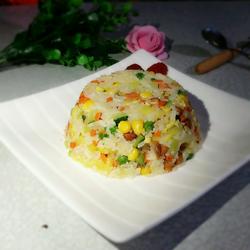 8.Add the rice and stir-fry for a longer time.The water in the rice will be drier and more fragrant