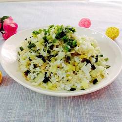 8.Finally add rice, stir well, add appropriate amount of salt and chicken essence.