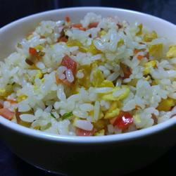 3. Then pour in diced ham and dried fennel, Stir-fry diced carrots, diced red peppers, and minced green onions