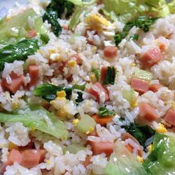 3. Heat oil in a pan, add chopped ham, celery and carrots and stir-fry, add a little salt and chicken powder, stir well and set aside.Heat the oil in the pan, add the eggs, stir-fry, and set aside.Heat the oil again, add the oil, stir-fry the leftover rice, stir well, then add the ham, celery, carrots, and eggs, stir well