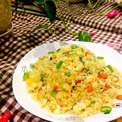 1.First put the shrimp in Boil the peas in boiling water, blanch the peas, dice the carrots, and chop the green onions.