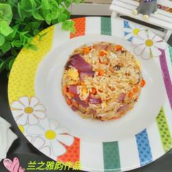 6.Add 1 tsp salt and 1 tsp light soy sauce, add rice, stir-fry and press open