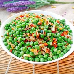 Fry it as dry as possible, and it will be particularly fragrant.The peas can be boiled in water or fried directly.If boiled in water, the cooking time may be shorter.The peas are the ones peeled out of the fresh peas I bought.
