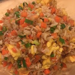 12.Crush the rice and stir-fry until the rice and side dishes are mixed together.Add a spoonful of light soy sauce.A little sugar, pepper, salt.