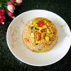 5. Then add red pepper and ham cubes and stir-fry, add appropriate amount of salt and raw Season and scoop.