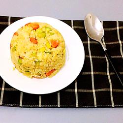5. Add rice and stir-fry.You can add a little salt and stir-fry together, or you can not add it.Because the eggs and ham sausage already have salt.