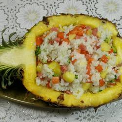Add pineapple at the end, mix well and serve.Avoid frying the pineapple, which will affect the taste.You can put it on the plate directly..If you like pineapple bowls, you can buy pineapples with skin and cut them in half, use a knife to dig out the pulp, try to keep the pulp intact, and then use a small spoon to scrape off the remaining pulp.
