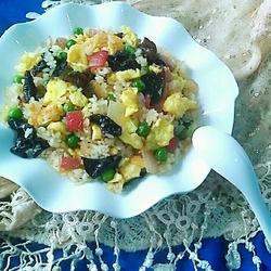8.The fragrant egg fried rice is completed and placed on a plate.