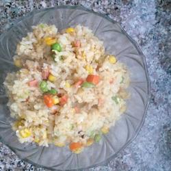 4.Add salt and stir-fry chicken essence for a few minutes, and a home-cooked fried rice with full color, aroma and flavor will be ready.Pot.