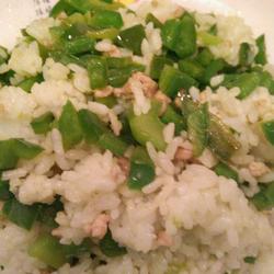 Green pepper (appropriate amount) | Raw meat Rice (appropriate amount) |