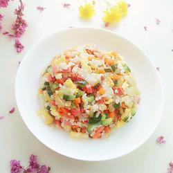 1 Stir-fry over low heat throughout the process, because this way the dry-fried rice will be fragrant and the vegetables can be blended together.