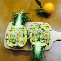 2. Cut the pineapple in half, Remove the pulp and keep the shell