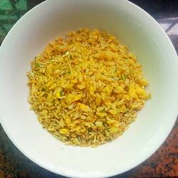 8.Make sure every grain of rice is spread out and coated with egg liquid, then add appropriate amount of salt, pepper and chives, stir-fry for a while and then serve