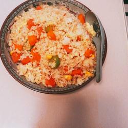 1. Cut the carrots and ham into cubes, cut the green pepper into rings, and put the corn kernels in place; beat the eggs and add an appropriate amount of salt