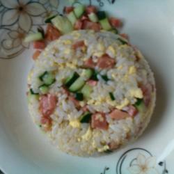 How to make cucumber, ham, and egg fried rice