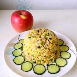 5.Finally, stir-fry the eggs and rice together, add salt, and serve on a plate