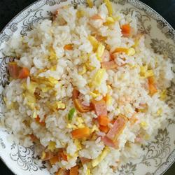 11.Fry evenly and the eggs, shrimp, ham and rice are ready