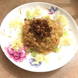 When frying the minced meat, pay attention to the seasoning to avoid being too salty; the cabbage and cucumber on the plate can be mixed with rice to eat, especially the cucumber is crisp and refreshing, leaving a faint fragrance of cucumber in your mouth