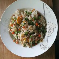 Rice (appropriate amount) | Peanut oil, light soy sauce, salt, minced garlic, beans , carrots, eggs ( According to personal dosage ) |