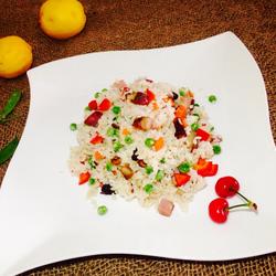 7. Add diced colored peppers and blanched peas and stir-fry before serving.