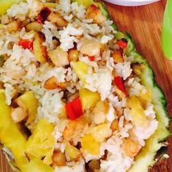 When taking out the pineapple flesh, first cut it in half, then use a knife to cut along the edge of the pineapple, and then use a spoon to dig out the pulp along the knife mark.Also, it would be better to fry the rice after it has been cooled