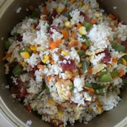 How to make fried rice with cured meat and mixed vegetables