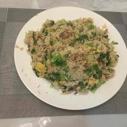 8.Finally, add the fried lettuce and rice and stir-fry together, then add the green onion and serve.