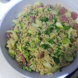 4.Add beef cubes and fry the sausage until 8 minutes done