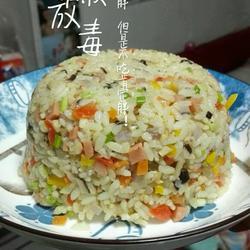 2.Crack in an egg, a little white wine, and mix evenly.(The eggs make the rice grains golden, and the white wine makes the rice loose.)