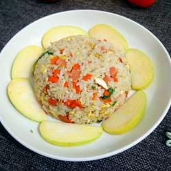 5.Add rice When stir-frying, use a shovel to press the rice to spread it out