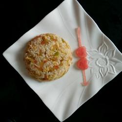 3. Pour in the rice, stir-fry evenly, and serve on a plate.