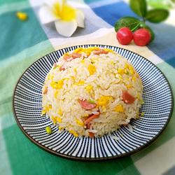 7.Pour in ham sausage and chopped green onion and stir-fry