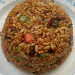 Leftover rice ( appropriate amount ) | Diced beef with soy sauce ( a little ) |