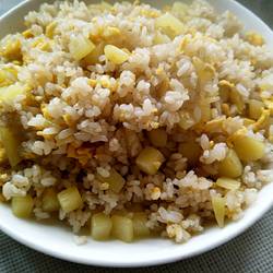 9.Leave the bottom oil in the pot, add rice and stir-fry