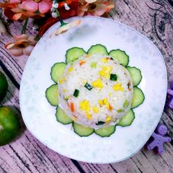 8.After the rice is fried, add eggs and appropriate amount of salt and continue to stir-fry