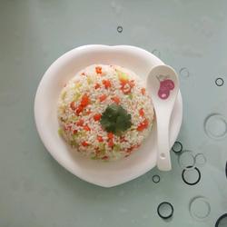 It is best to use overnight rice for rice, and the three-color diced rice can also be replaced with other diced vegetables according to your favorite food.