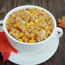 6.Put the eggs aside, add the corn and carrots and stir-fry