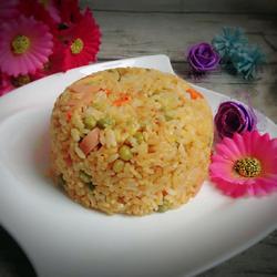 10.Add ham, a little salt, and a Spoon a spoon of soy sauce and stir-fry for a while