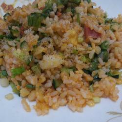 4. Heat the oil, add the rice, and stir-fry until golden brown.Salt