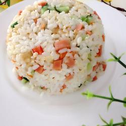 6. After the oil is hot, pour in the rice, add the diced vegetables and stir-fry, add salt and MSG.Stir fry a few times