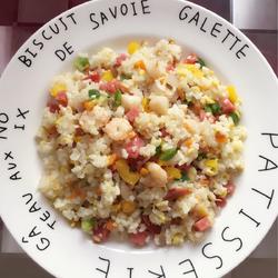 The scallops and shrimps are easier to cook.You can choose to add the diced vegetables when they are ripe or fry them separately until they are ripe and then put them out at the end.The diced vegetables can be selected from other dishes according to personal taste, and the quantity of shrimp and scallops can also be adjusted according to personal taste.
