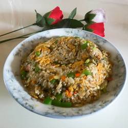 11.Add the rice again, break up the rice with a spoon and stir-fry evenly!