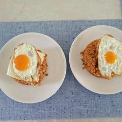 4.Put in the canned tuna and stir-fry, then add a little salt and add a sun-coated egg if you have time