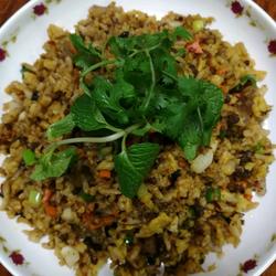 1.Mix eggs and rice evenly