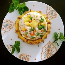 Leftover rice ( Two bowls ) | Pineapple, peas, sweet corn, salt. ( Appropriate amount ) |
