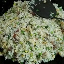 6. Put the pork and sausage into the pot and cook over low heat until the rice is ready.La! !