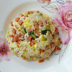 4.Saute until half cooked.Add ham and continue stir-frying over low heat