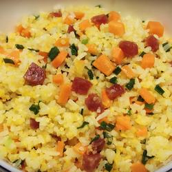 3.Put oil into the pan, and when it is slightly hot, add rice.Be careful not to make the heat too high, otherwise it will stick to the pan