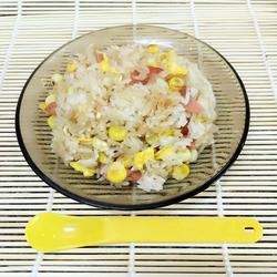 7.Add eggs, ham and corn and stir-fry evenly and serve.